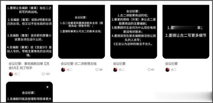 古二晒出多个《会议纪要》来证明自己为《繁花》剧本做出的贡献,其中不仅有他和王家卫、秦雯讨论剧本的音频,也有秦雯搭档许某当着股票顾问的面承认“股票商战”部分主要是古二写的,算是给古二的编剧身份又多了一重证明。